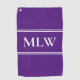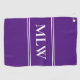 Simple Royal Purple and White Monogram Template Golf Towel