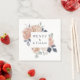 These simple rustic floral wedding napkins are perfect for your elegant vintage spring wedding. It is designed with classic rose flowers and simplistic blush peonies. All of which is accompanied by touches of green eucalyptus and navy leaves. With all of these light colourful watercolor flowers, you are sure to get the feel you desire.