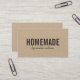 Stylish rustic social media kraft business card with the word "Homemade" in bold font and a stylish script for your name or store name in dark grey. This stylish handmade business card is ideal for crafters and makers of handmade goods, like artists, knitters, dressmakers, etc who want a way to let the people they meet in real life know how to find them and their work/portfolio online and on social media.
