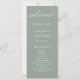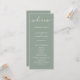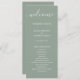 Introducing our minimalist and trendy wedding Introducing our minimalist and trendy wedding Program card, featuring a serene saga green colour. The delicate white calligraphy adds a touch of sophistication to this Sea of Greens Program card, making it an ideal choice for a modern wedding celebration. Customise or edit further by please clicking the "customise further" link and use our design tool to modify this template. All text style, colours, sizes can be modified to fit your needs. select the paper type as per wish before purchasing.