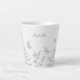 Unique simple latte mug featuring romantic and elegant sage green flowers and butterflies