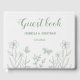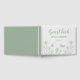 Unique simple wedding guest book featuring romantic and elegant sage green flowers and butterflies
