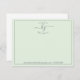 Modern, Elegant Sage Green Two Monogram Script Name | From The Desk Of Note Cards. Featuring a simple thin grey frame, name, email address, phone number and swirly hand lettered two (2) monogram script with swashes initial in light pastel sage or mint green background colour. If you do not need personalise you can delete it. This feminine, pretty horizontal landscape orientation note card is a perfect gift idea for school, business, professional, birthday, wedding and any party or occasion for someone that like girly and modern styles. If you need help or matching item please contact to me.