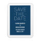 Simple Save the Date Magnet in dark blue and white with a modern typography design. This trendy and chic save the date magnet is easy to customise with your wedding details. For more customisation options, click on the Customise It button.