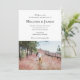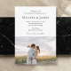 Introducing a uniquely personalized wedding invitation that perfectly marries elegance with cherished memories. The top half of this exquisite invite showcases your wedding details in a stunning combination of elegant script for the introductory and reception information, and timeless serif font for the remaining text, creating an air of sophistication and grace. Below, the invitation becomes truly yours with the addition of your chosen photo, adding a personal touch that will captivate and delight your guests. This invitation is not just an announcement, but a beautiful keepsake, reflecting the special bond you share.