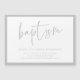 This Modern Script Baby Baptism invitation features a simple frame, hand lettered baptism and minimal typography. Click the edit button to customise this design.