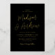 Elegant wedding invitations featuring your names displayed in a handwritten gold foil script with a black background. Personalise the simple gold foil wedding invitations with your wedding details. Designed to coordinate with our Simple Script wedding collection.