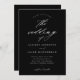 A simple and chic black and white wedding invitation featuring elegant script calligraphy details and classic text. Click the edit button to customise this design.