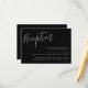 Elegant wedding reception enclosure cards featuring "Reception" in a white script with a solid black background (or colour of your choice). Personalise the simple wedding reception cards by adding your reception details in white lettering. Designed to coordinate with our Simple Script wedding collection.