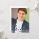This simple, modern graduation card features a black script overlay and full photo. On the front, "Graduate" is displayed along the bottom in handwritten script over a large, vertical photo. Add your graduate's name and photo, graduation year, and school to the front. On the back, you can add graduation party details.