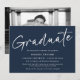 This is a minimalist and simple graduation announcement. It uses a modern and stylish handwritten script design in classic dark blue and white, with a photo on the back. This design applies a black and white filter to your photo, to remove or change this press the blue button to edit your design, then select the photo and edit the filter settings accordingly. Please contact the designer for any queries about this design.