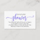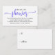 Cute bridal shower enclosure card featuring a simple and minimal design in purple with "shower" in script and a message asking your guests to leave their gift unwrapped. You can use the card as a gift tag with script "to" and "from" on the back or delete the text. A display shower is the perfect way to celebrate in an eco-friendly way while allowing more time to spend with guests rather than opening gifts.