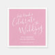 Simple modern white script text with white heart on dusty pale pink wedding of napkins. Typographical text reads Eat, drink & celebrate the wedding of then add your own bride and grooms names and wedding date. Other matching items and colours available in this design. © Original design by www.mylittleedenweddings.com on zazzle.