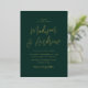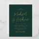 Elegant wedding invitations featuring your names displayed in a handwritten gold foil script with a forest green background. Personalise the simple gold foil wedding invitations with your wedding details. Designed to coordinate with our Simple Script wedding collection.