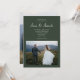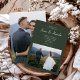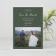 This elegant forest green wedding invitation features a simple minimalist design with modern script lettering and classic typography with two custom photos. Shop the entire wedding suite found in this trendy wedding collection.