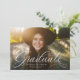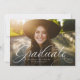 A classic and elegant script graduate in white sits at the bottom of a horizontal photo. The custom text includes room for the graduate's name and also school and year details. The classic red backer has a simple grid pattern, and the color can be changed by clicking "customize further." Announce your graduate's accomplishment to friends and family with this design!