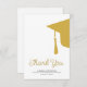 Modern trendy script faux gold and white simple minimalist graduation thank you card template featuring a graduation cap with tassels. ++++++++++ Easy to personalise with your details and custom text!