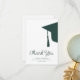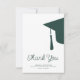 Modern trendy script dark emerald green and white simple minimalist graduation thank you card template featuring a graduation cap with tassels. ++++++++++ Easy to personalise with your details and custom text!