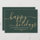 Simple minimalist green business holiday card with an elegant modern script reading "Happy Holidays" in a beautiful gold colour. This card is fully customisable. You may change any message with the one of your choice.