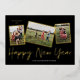 Simple Script Happy New Year 3 Photo Collage Foil Holiday Card