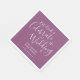 Simple modern script text eat, drink & celebrate the wedding of napkins. The typographical text reads Eat, drink & celebrate the wedding of then add your own bride and groom's names and wedding date. Other matching mulberry dark purple pink plum colour with white script and heart items and other colours are available in this design. © Original design by www.mylittleedenweddings.com on zazzle.