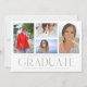 Simple Script Multi Photo Graduation Announcement Card features four of your favourite photos of your college or high school graduate on the front with the elegant modern silver calligraphy script "Graduate" overlay. Add an additional photo on the reverse. Simple, stylish and classy. Created by ©Evco Studio www.zazzle.com/store/evcostudio