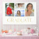 Simple Script Multi Photo Graduation Announcement Banner features four of your favourite photos of your college or high school graduate on the front with the elegant modern gold calligraphy script "Graduate" overlay. Perfect for a Graduation Party Simple, stylish and classy. Created by ©Evco Studio www.zazzle.com/store/evcostudio
