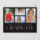 Simple Script Multi Photo Graduation Announcement Postcard features four of your favourite photos of your college or high school graduate on the front with the elegant modern pink calligraphy script "Graduate" overlay. Personalise with a message on the reverse. Simple, stylish and classy. Created by ©Evco Studio www.zazzle.com/store/evcostudio
