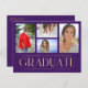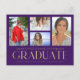 Simple Script Multi Photo Graduation Announcement Postcard features four of your favourite photos of your college or high school graduate on the front with the elegant modern gold calligraphy script "Graduate" overlay. Personalise with a message on the reverse. Simple, stylish and classy. Created by ©Evco Studio www.zazzle.com/store/evcostudio