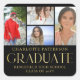 Simple Script Multi Photo Grad Graduation Party Stickers & Labels features four of your favourite photos of your college or high school graduate with the elegant modern gold calligraphy script "Graduate" overlay. Personalise with name, class of and school or college. Simple, stylish and classy. Created by ©Evco Studio www.zazzle.com/store/evcostudio