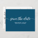 Customise this navy blue "Save the Date" wedding postcard. Announce your engagement, personalise the text with your upcoming wedding details. Congratulations!