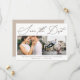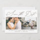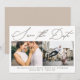 This simple script two photo modern and minimal save the date card features a neutral beige and white colour with calligraphy script.