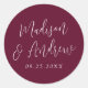Simple Script Personalised Burgundy Wedding Classic Round Sticker