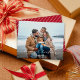 This is a budget modern and minimalist holiday card on a flat sheet. The elegant design features a simple single photo and an elegant handwritten script font with the greeting “Merry Christmas”.