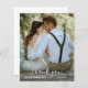 Budget photo wedding thank you card with a simple design featuring "thank you" in an elegant handwritten script along with your names and date over your favourite picture. The back has your custom thank you message in black and white. A modern thank you card that coordinates with any style of wedding.