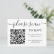 A simple elegant script RSVP enclosure card featuring your own QR code and wedding website details set in chic typography and special photo on the reverse. Designed by Thisisnotme©