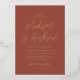 Elegant wedding invitations featuring your names displayed in a handwritten gold foil script with a rust background. Personalise the simple gold foil wedding invitations with your wedding details. Designed to coordinate with our Simple Script wedding collection.