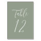 Elegant wedding table numbers featuring the table number displayed in a simple white script with a sage green background. The text and background colors can be changed to your wedding colors using the editing tools. To order these table cards, individually edit the card with the number and add it to your cart. Repeat for each number needed.
