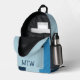 Simple Shades of Blue Vertical Stripes Monogram Printed Backpack