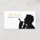 A simple barber shop and hairstylist business cards featuring a profile silhouette of a man shaving with a vintage razor. Add your name in a stylish gold coloured font to the front and your contact information to the back. Schedule clients for their upcoming haircuts with the appointment reminder template on the back.