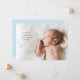 This birth announcement features simple text with a side orientation. The back offers a blue background that is editable with room for another photo.