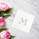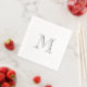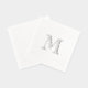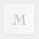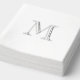Silver monogram White Dinner Napkin. Wedding. Available also in gold and rose gold foil.