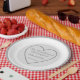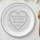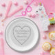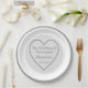 A Simple and Clean Silver Grey Outlined Hearts Design Paper Plate with clear wording. Grey border.