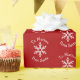 This wrapping paper features a simple geometric snowflake on a deep red background with editable text above and below. Personalize the wrapping paper right on the product page with the recipient’s and gifter’s names or with a seasonal greeting like “Merry” above and “Christmas” below. Featuring original art from Dogwood & Thistle. If using a seasonal greeting, can recommend using capitals and putting spaces between each letter, I.e. M E R R Y and. C H R I S T M A S