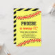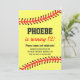 Simple Softball Birthday Invitation | Send these simple softball girls birthday invites to your guests to celebrate your all star's birthday! This yellow and red softball party invite is easily customisable and includes a black and yellow stripe back!