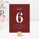 Simple Solid Colour Dark Wine Cinnamon Red Wedding Table Number