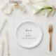 This simple Spanish wedding cake paper plate is perfect for a modern wedding reception. The simple and elegant design features classic and fancy script typography in black and white.