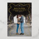 Contemporary wedding save the date card featuring a fun design with your event details in a simple layout, over your favourite photo, inside of a hand drawn squiggle frame. All design elements on the front are in real foil and the back is black and white. The foil on the front may be changed to ink and the back may be changed to any colours you choose in the design editing tool. The organic shape of the wavy frame makes this save the date card a great choice for a modern wedding.