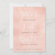 Modern and simple save the date card in features sans serif and italic lettering in crisp white, with your names, wedding date and location interspersed with "save the date." A watercolor wash background in pale peachy blush pink adds soft romantic charm. Personalise with your invitation info and/or wedding website along the bottom.