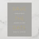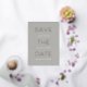 Modern save the date design in chic grey-beige features sans serif and italic lettering in crisp white, with your names, wedding date and location interspersed with "save the date" in gold. Personalise with your invitation info and/or wedding website on the back. An elegant save the date design for modern couples with a minimalist aesthetic.